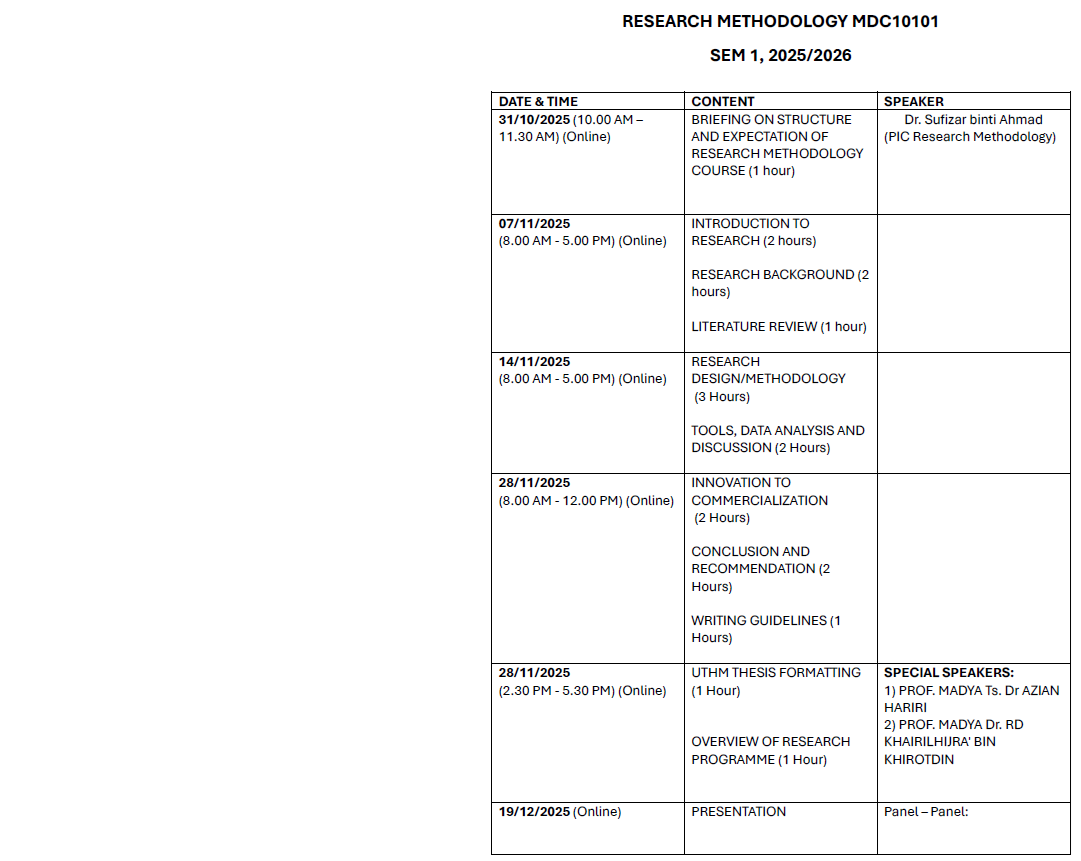This course is designed to strengthen students’ research competence in the context of engineering and engineering technologies. It focuses on developing skills in technical writing, problem analysis, and critical evaluation. Students will be introduced to research strategies, engineering research philosophies, theoretical frameworks, research ethics, and commonly applied methodologies in engineering studies.